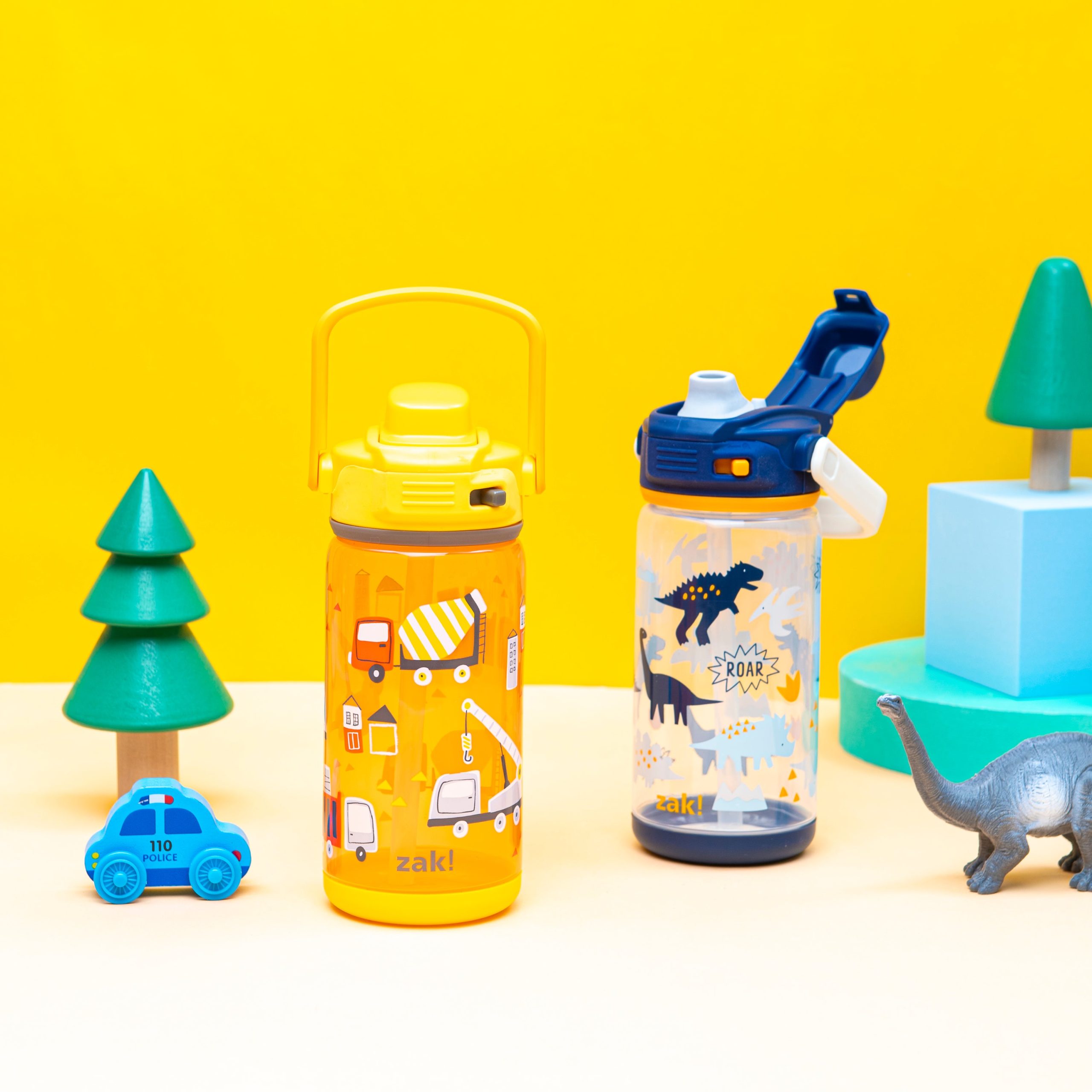 Every adventure needs the perfect hydration companion. and the 16-ounce Beacon bottle from zak! is designed to keep up with your child’s busy day. Featuring a spill-proof silicone spout and a convenient push-button lid. this water bottle eliminates leaks and ensures an easy. mess-free experience. The wide carrying handle is ideal for little hands to grab and go and parents will love the protective bumper for added durability. making it perfect for active kids. Plus. the top-rack dishwasher-safe design makes clean-up a breeze. With a variety of bold. colorful designs. the Beacon Bottle is as stylish as it is functional. making hydration fun and hassle-free for kids and parents alike.