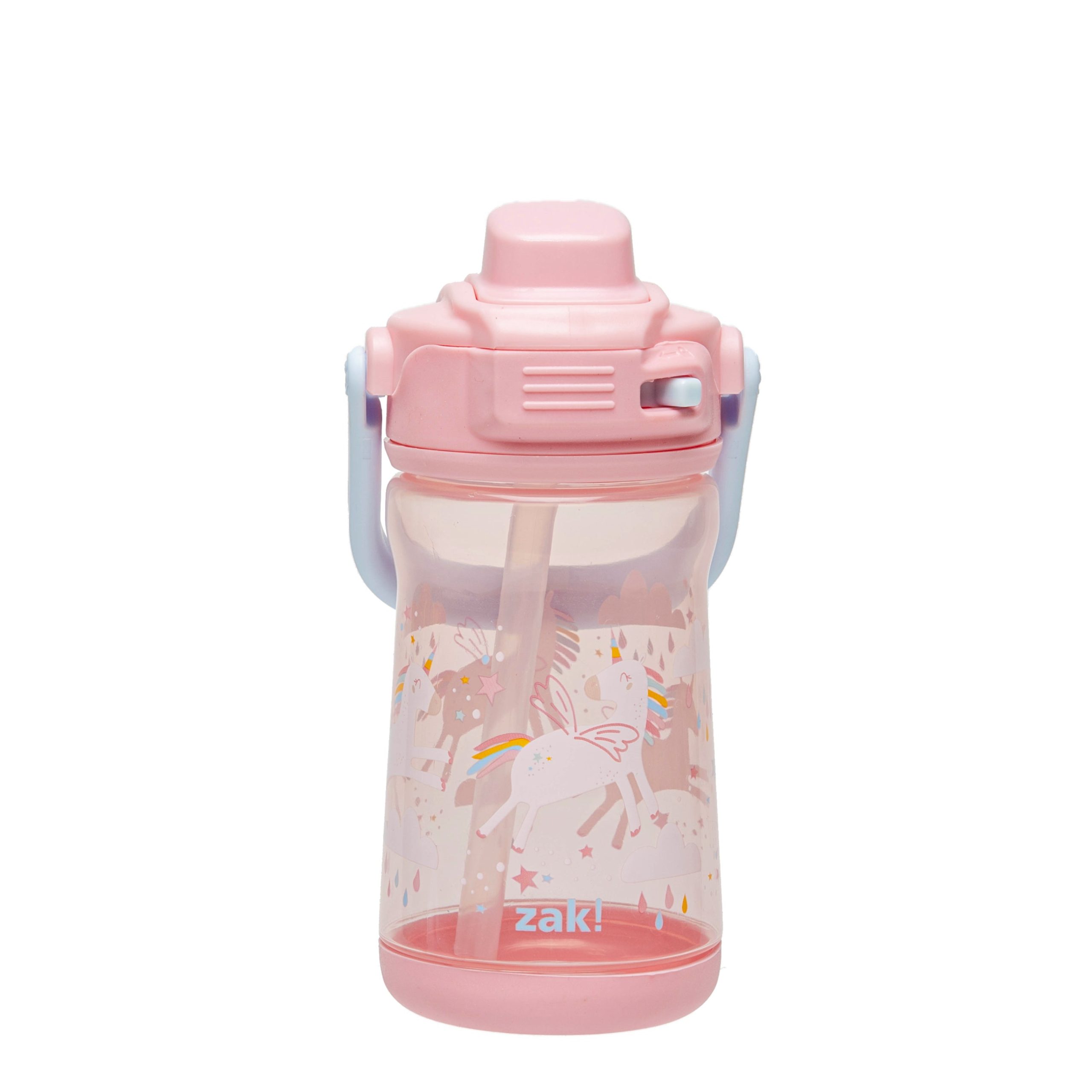 Whether it’s a school day. a playdate. or an exciting weekend adventure. the 12oz Unicorn Beacon Water Bottle from zak! is the perfect companion for keeping little ones hydrated. Made from sturdy. BPA-free plastic. it’s built to withstand the bumps and scrapes of an active lifestyle while ensuring safety and durability. The soft silicone spout is gentle and comfortable. and a flip-up protective cover opens with the push of a button. making it easy for kids to sip on the go. The spout locks securely to prevent leaks. and the non-skid base helps keep the bottle steady and absorbs impact to protect it from damage. Sized to fit in most car cup holders and equipped with a convenient carrying handle. this bottle is designed for grab-and-go convenience. When the adventure ends. simply toss it on the top rack of the dishwasher for a hassle-free cleanup. Featuring a fun design that adds a splash of joy to every sip. this reusable bottle is sure to make staying hydrated a highlight of your child’s day!