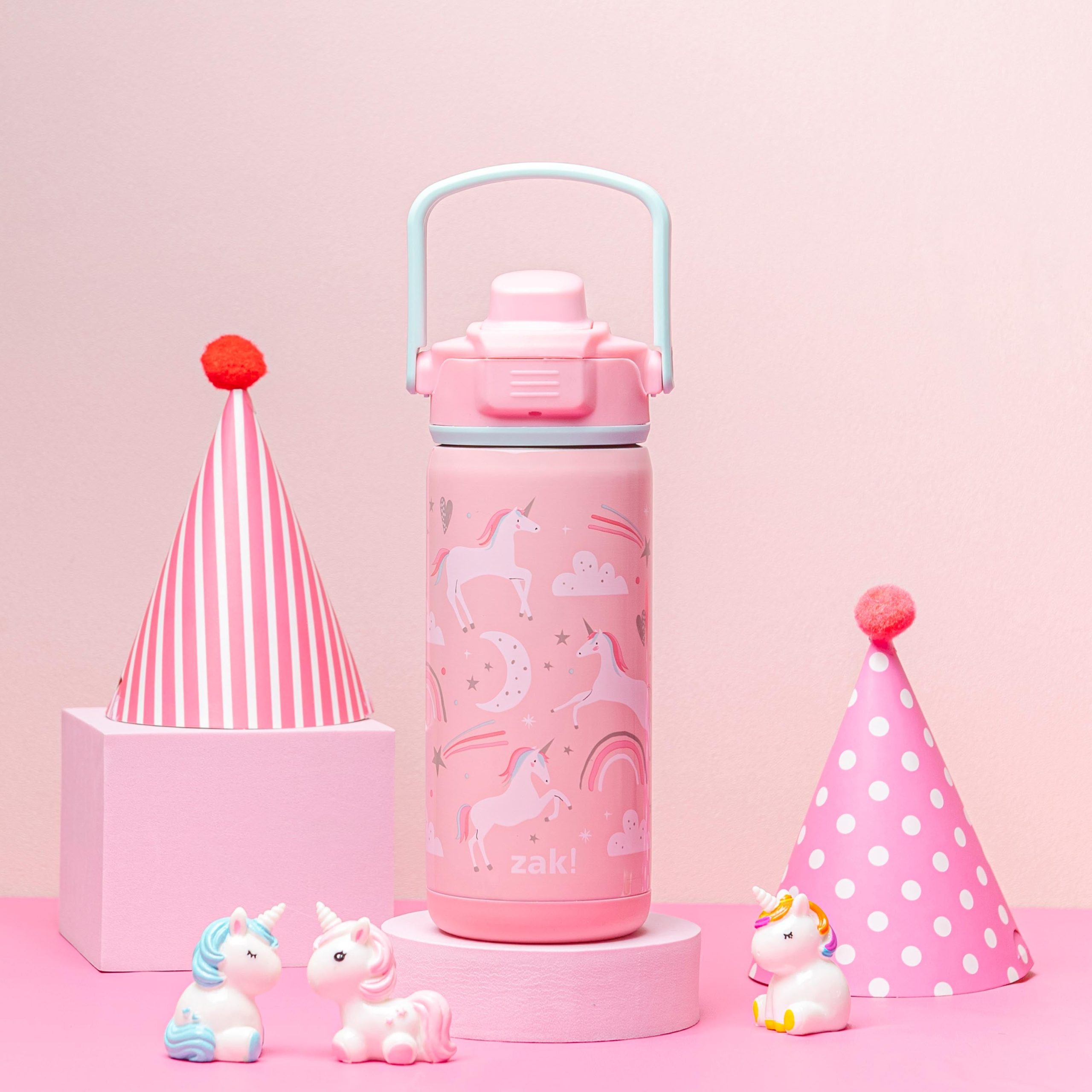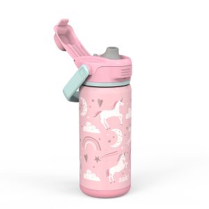We know every day can be an adventure for our kiddos. and the 14oz Stainless Steel Beacon Bottle from zak! is made to travel alongside young explorers on all of life’s most exciting endeavors. The wide carrying handle is ideal for little hands to grab-and-go. while the lid snaps tight to prevent leaks and—moms rejoice—keep the drinking spout clean. The spout is made from silicone so it’s comfortable for even the pickiest little ones to drink from. The double-wall construction is also vacuum insulated. so it’ll keep drinks cold no matter how long the day’s escapade lasts. And while Mom and Dad will love the functionality and practicality of the Beacon Bottle. the look and feel can put a smile on your child’s face during all their adventures. Each bottle has unique graphics designed to unlock imaginations.