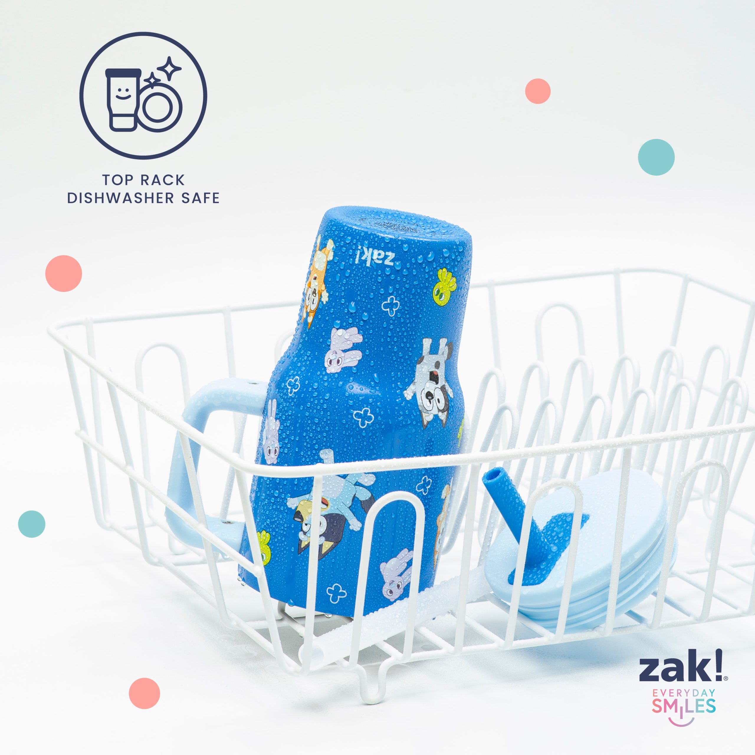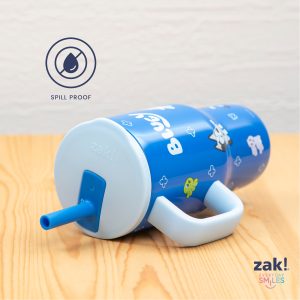 The 16-ounce Bluey tumbler is made of durable stainless steel. with vacuum insulation that keeps drinks fresh and cool while stopping condensation and water rings. It has a silicone straw that’s comfortable to sip from. as well as sealed to the lid to help prevent splashes and spills. When you’re on the go. the handle gives you a secure grip and the tumbler fits in most car cup holders. making travel easy and convenient. And at the end of the day. the durable stainless steel straw tumbler is top rack dishwasher safe for easy cleanup! Use it with kids age 3 and up for cold drinks only. and do not microwave.