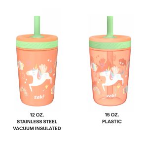 Let’s keep it simple: these Unicorn tumblers don’t leak. The silicone sipper spout design has a built-in valve that stops water from flowing when no one is drinking: it’s easy for children to quench their thirst. but won’t make a mess if the tumbler is tipped over. It’s the perfect choice for active kids. or young ones just graduating from sippy cups who aren’t ready for an open-topped tumbler yet. Two tumblers and a bonus sipper are included in the set—the 12-ounce stainless steel tumbler has vacuum insulation. which keeps drinks cold and eliminates water rings from condensation. and the 15-ounce plastic tumbler is lightweight and easy to carry. They’re both durable. reusable. and completely BPA free.